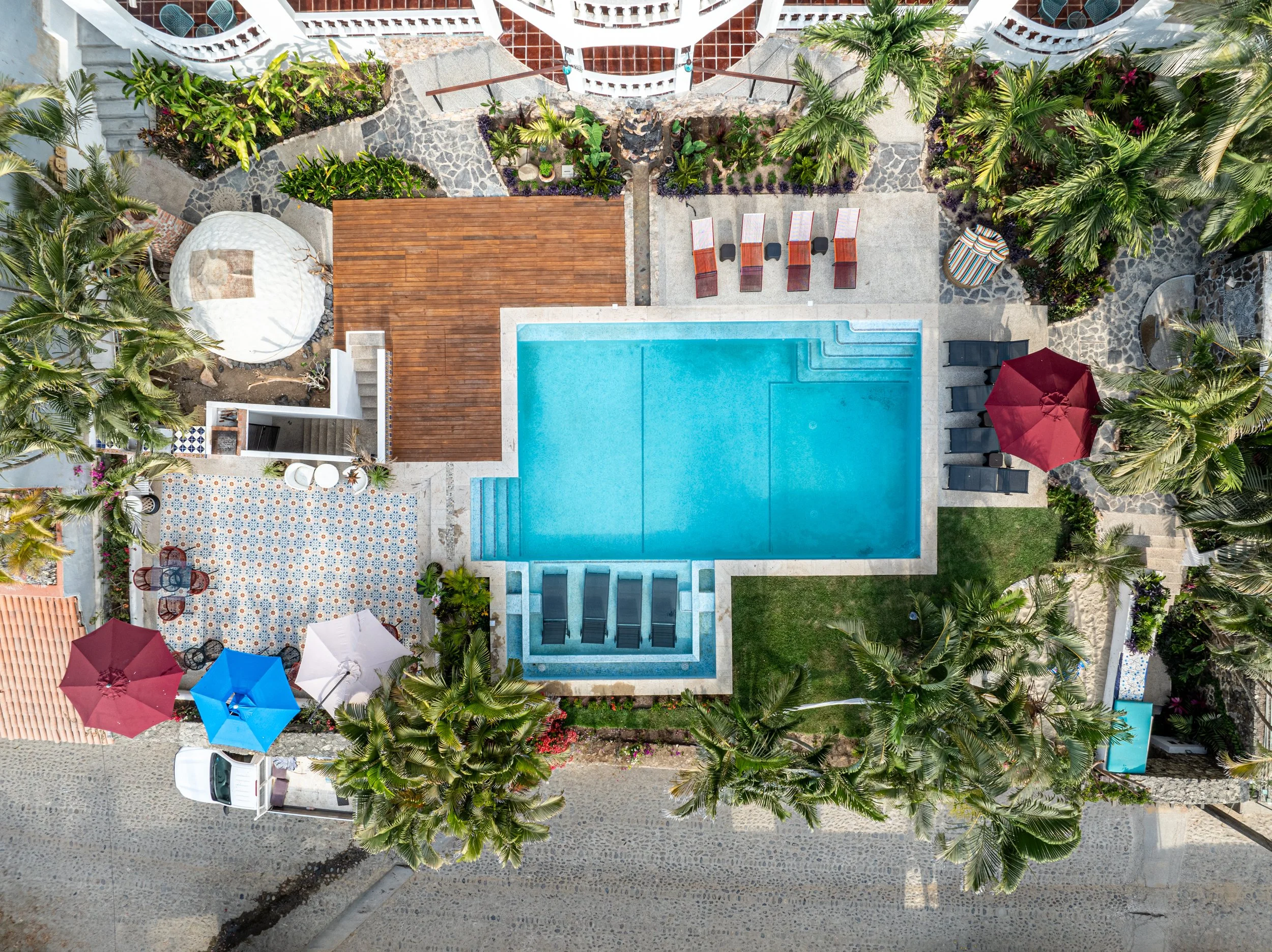 Alma Vida is a private hacienda-style villa with nine serene suites and ten bathrooms. It’s ideal for cozy group circles, ocean-view yoga, sunset dinners under the sky, and plenty of quiet nooks for solo reflection and integration.